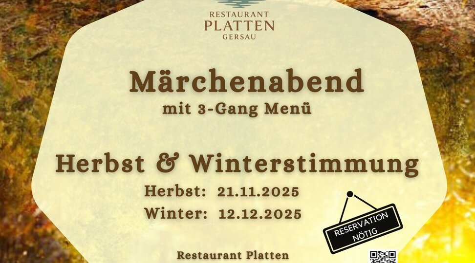 Märchenabend im Restaurant Platten – mit 3-Gang-Menü!
