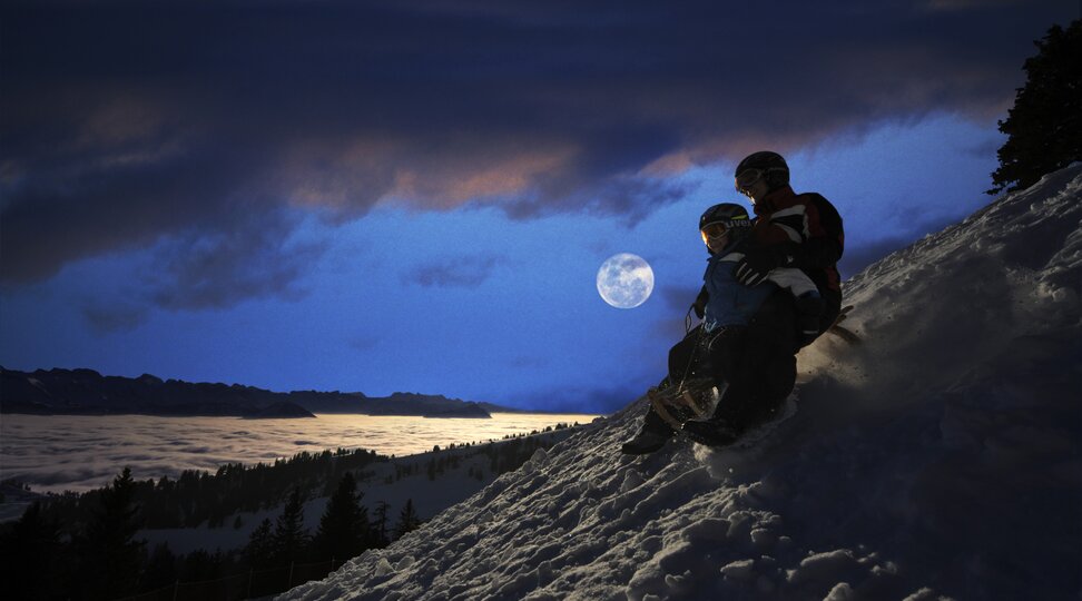 Sledging fun and fondue enjoyment are pre-programmed during night sledging at 1551 m above sea level.