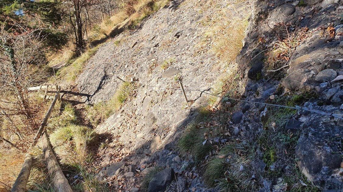 If you have successfully explored the cave, the same route leads back to the signpost. From here, the route leads the hikers to various small artificial structures in the steep cliffs, to the Chriesbaumberg pasture land at 1.012. meters above sea level.