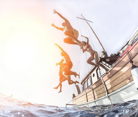 Sunshine and ships - the perfect combination for enjoying a beautiful summer's day on the crystal-clear water of Lake Lucerne. With motor boats, pedal boats, canoes, stand-up paddle boards, or hydro bikes — all available to rent at the boat rental shop Lüüchttürmli in neighboring Weggis - groups can explore the lake and surrounding mountains such as Rigi, Pilatus, Bürgenstock, and Seelisberg, undisturbed and at their own pace.